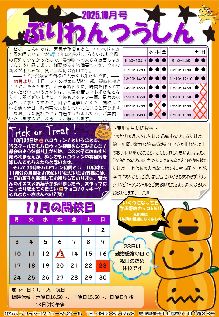 ブリッジコンピュータスクールの教室しんぶん、「ぶりわんつうしん」2025年10月号を発刊しました!