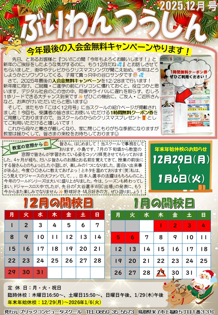 ブリッジコンピュータスクールの教室しんぶん、「ぶりわんつうしん」2025年12月号を発刊しました!